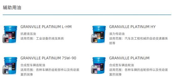 格兰威尔润滑油产品根据世界润滑油行业最高标准进行配方设计,生产工艺控制和检验。格兰威尔拥有世界一流的包装生产线,为所有家用、商业和工业应用提供润滑油,可生产内燃机润滑油、工业润滑油、工业特种油脂、齿轮油、液压油、液力传动油、润滑脂、防冻液、刹车油、金属加工液、船用油及润滑油添加剂等系列产品,所有产品都有一个全球化学品注册身份,适于使用该产品的所有场所。